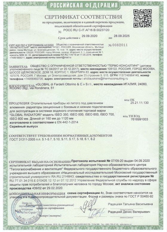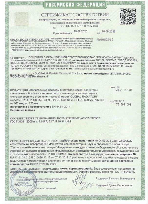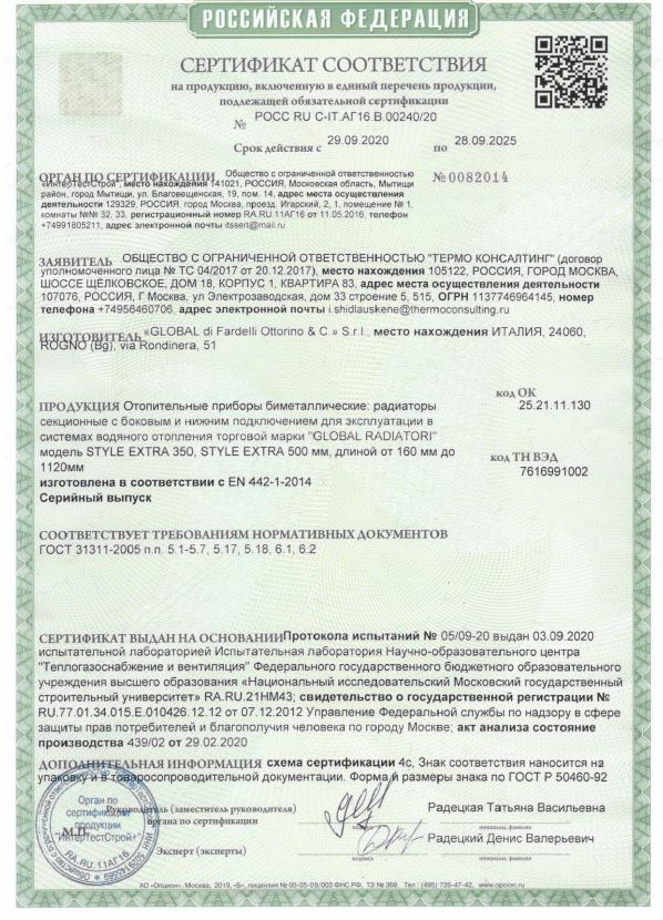 Сертификат соответствия Global ISEO Сертификат соответствия Global STYLE EXTRA Сертификат соответствия Global STYLE PLUS